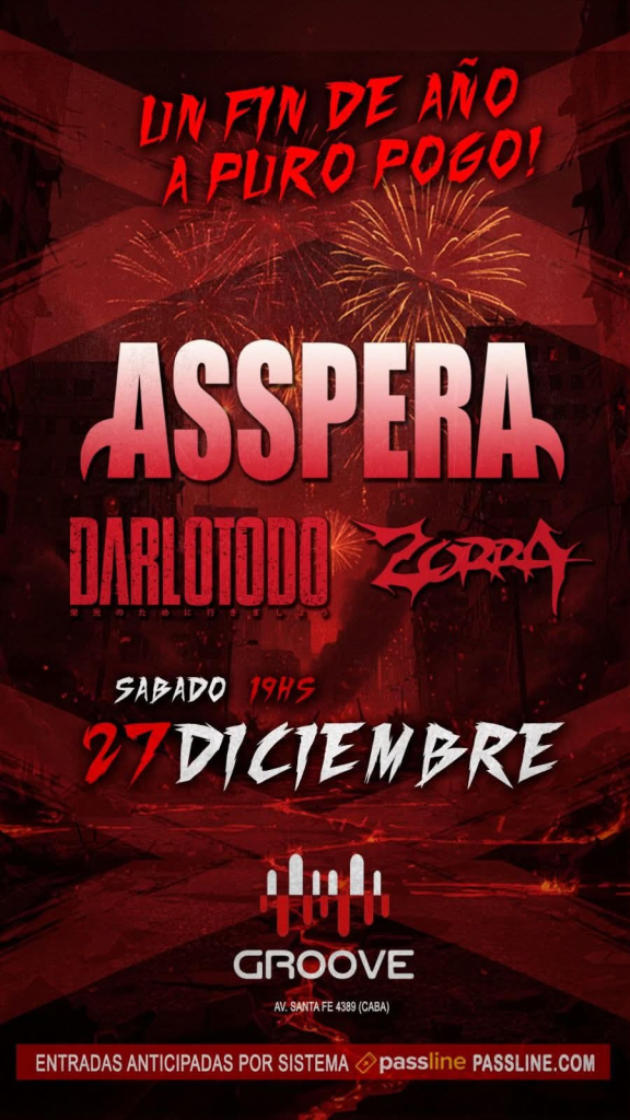 Las entradas ya estan a la venta por sistema passiline.com @passline_argentina como siempre super precio $15.000 para que puedan ir todos a decirle CHAU a este año de mierda! https://www.passline.com/eventos/asspera-en-groove-2712 Sacala ya que van a volar!