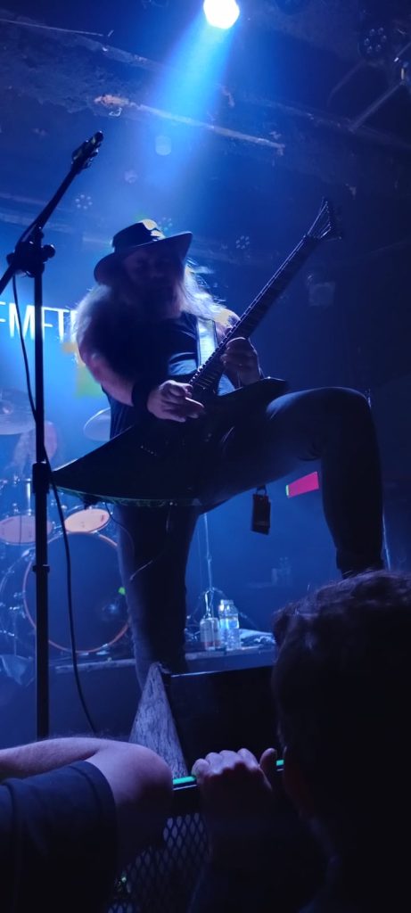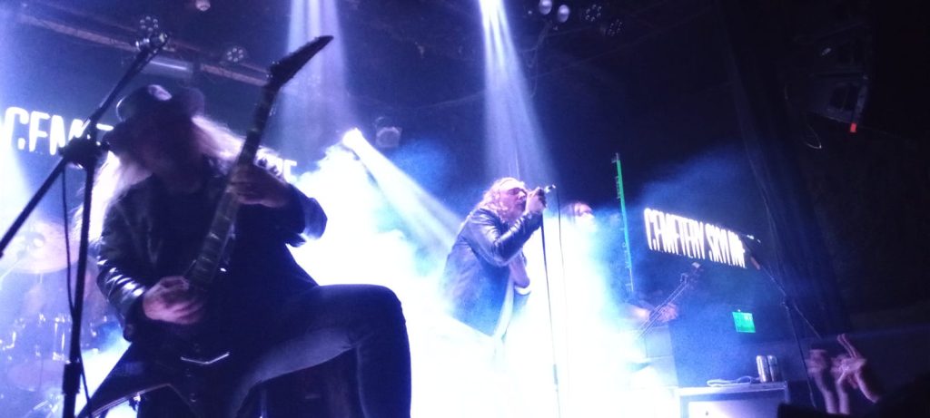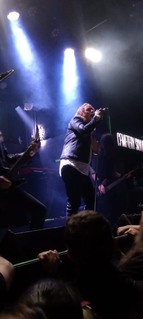 La noche continuo con Cemetery Skyline, la super banda banda compuesta por los suecos y fineses (Mikael Stanne, Marcus Vanhala, Victor Brandt, Vesa Ranta, Santeri Kallio) todos con presente y pasado en grandes bandas de la escena mundial, y que viene ganando adeptos alrededor del mundo. Desde su primer acorde en «Behind the Lie» y seguida por «Torn Away» el público se sumergió en una experiencia auditiva única. La combinación de melodías melancólicas y riffs potentes resonó en cada rincón del Uniclub. La voz del Mikael, poderosa y emocional, logró conectar rápidamente con la audiencia, haciendo que cada uno de los presentes se sintiera parte de un ritual sonoro.