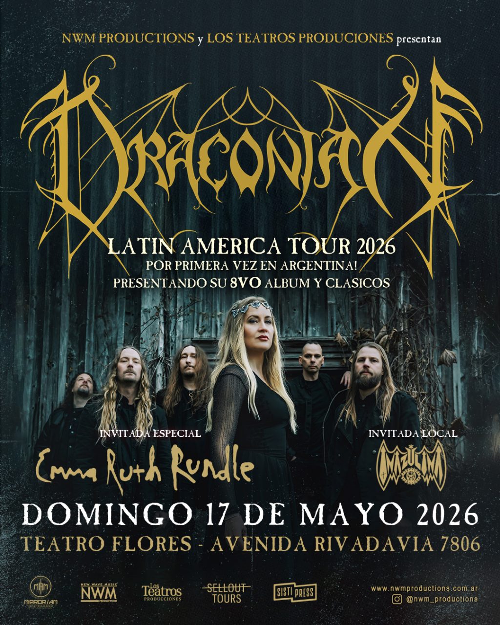 Draconian llega por primera vez a Argentina! La banda sueca de gothic/doom se estará presentando el domingo 17 de mayo en Teatro Flores (Avenida Rivadavia 7806, CABA), para interpretar todos sus clásicos y temas de su nuevo álbum, contarán como invitada especial nada menos que con Emma Ruth Rundle que desplegará todo su dark folk único y emotivo. La banda local invitada es Inazulina.