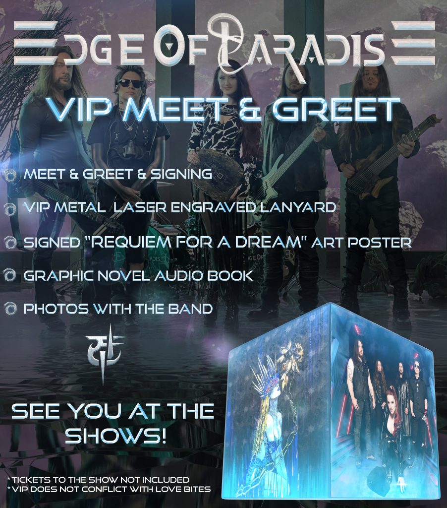 La gira con Lovebites marca otro hito para Edge of Paradise, quienes han girado por más de 30 países hasta la fecha y continúan aumentando su audiencia internacional. Los fans también tendrán acceso a experiencias VIP exclusivas de «meet & greet«, ofreciendo la oportunidad de conectar con la banda más allá del escenario y obtener artefactos exclusivos y únicos de Edge of Paradise.