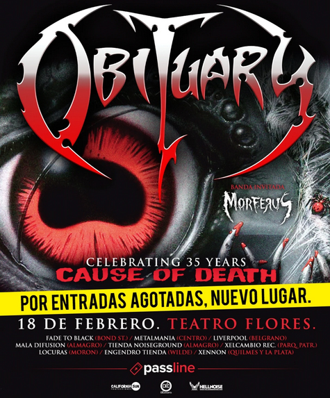 📣OBITUARY: Por entradas agotadas, el show cambia de locacion y se traslada al Teatro Flores.